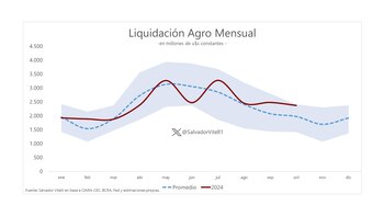 Tras las presiones de mediados de año cuando, ante la falta de compra de dólares por parte de la autoridad monetaria y las turbulencias financieras que pusieron en duda la capacidad oficial de sostener el ritmo de devaluación mensual en 2%, el campo parece haber comenzado a desprenderse de los granos retenidos, resignado también a que no se producirá en el corto plazo una baja de las retenciones. De hecho, hacia fines de julio y principios de agosto, desde el sector exportador garantizaban al ministro de Economía, Luis Caputo, el ingreso de unos USD 5.000 millones si se producía una baja de los derechos de exportación. El funcionario se negó una y otra vez a adoptar la medida, lo mismo que a modificar el tipo de cambio más allá del ya establecido “dólar blend”. Aun así, entre septiembre y octubre ese monto ingresó de todos modos.