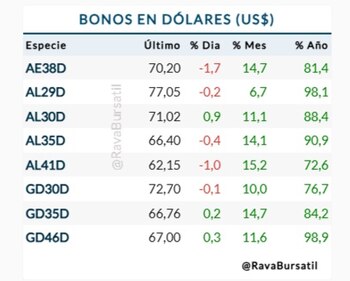 Por otra parte, varios analistas salieron a recomendar el AL30 luego del rally que tuvieron los bonos más largos como el GD35 en el último mes. Estos títulos venían rezagados pero se recuperaron sensiblemente a partir de una ola de compra sobre todo de inversores extranjeros.