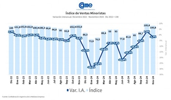 Las ventas declinaron 2,1% interanual en noviembre y la retracción hasta noviembre alcanza el 13,1%. En la comparación intermensual, aumentaron 2,5%.