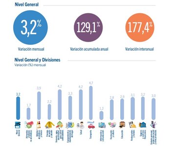 El IPCBA señaló que las divisiones Vivienda, agua, electricidad, gas y otros combustibles, Transporte, Salud, Restaurantes y hoteles, y Alimentos y bebidas no alcohólicas explicaron el 73,5% del alza general.