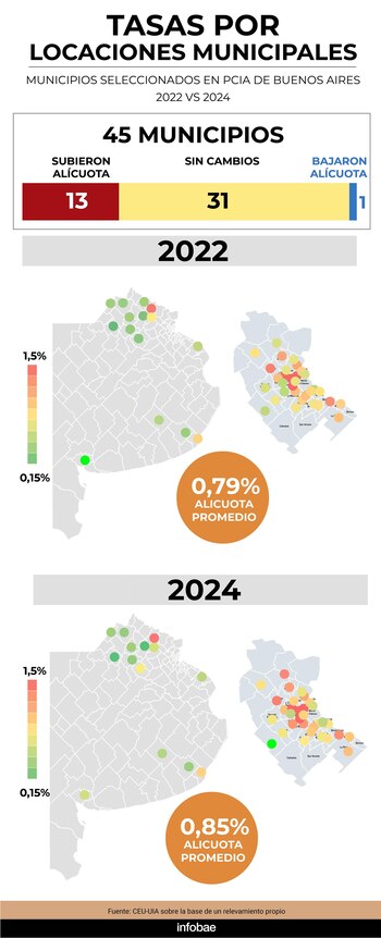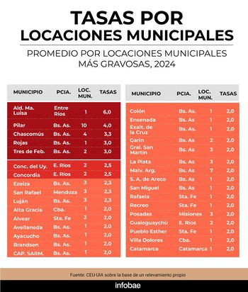“En 32 municipios, el 20% del total, se presentan 2 o más pagos por locación municipal. En 2024 se crearon 6 tasas nuevas a nivel país”, explicaron desde la entidad