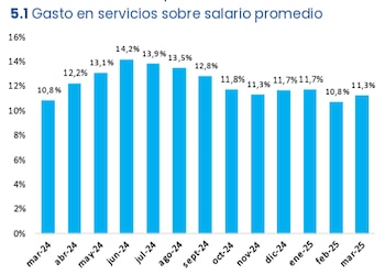 También explicó por qué la diferente evolución de las tarifas y la inflación pesa tanto en el bolsillo: “Antes del aumento de tarifas que comenzó en febrero del 24, el costo, el peso de la canasta de los servicios que relevamos representaba el 5% del ingreso promedio de un trabajador registrado en el sector privado. Hoy ese peso está por arriba del 11% y en junio llegó a representar el 15% del ingreso”.