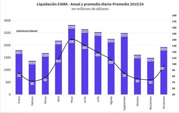 El economista Amílcar Collante, de Profit Consultores, explicó que “hay consenso que hasta junio la estacionalidad juega a favor de la ‘pax cambiaria’. Hay varios factores entre julio-octubre q pueden sumar presión al dólar oficial”. Uno de ellos es la “reversión de liquidación del agro. En mayo el promedio histórico es de USD 141 millones por día y en septiembre baja a USD 85 millones”.