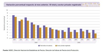 El mayor aumento se observó en el sector privado no registrado, que acumuló un alza del 52,5% en seis meses, más de tres veces el ritmo del costo de vida. Según los especialistas, estas fuerte diferencia se explica en gran medida por las actualizaciones esporádicas y más concentradas que suelen tener los salarios informales, así como por el rezago estadístico en la medición de esta categoría.