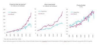 En 1984, Argentina y Brasil estaban en un punto de paridad en el campo. Ambos países producían aproximadamente las mismas toneladas de granos. Sin embargo, esa igualdad quedó en el pasado. Hoy, según un informe de Cippec, por cada tonelada que cosecha Argentina, Brasil obtiene más de tres. La comparación ilustra un contraste en trayectorias productivas que, en cuatro décadas, se tradujo en un rezago relativo para el agro argentino.