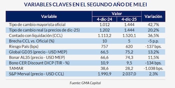 “El mercado también espera nuevas certezas en torno a cómo esta gestión reactivará la generación de dólares para afrontar vencimientos. El camino, según adelantó el presidente del BCRA, Santiago Bausili, sería por la cuenta financiera”, añadió GMA Capital.