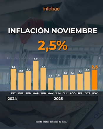 Pero ahora el dato se vuelve central, ya que determinará a cuánto se van a deslizar las bandas del régimen cambiario. Es que desde el 1° de enero comienza la nueva fase del programa económico en donde el techo y piso se ajustan a la inflación y el BCRA se propuso salir a comprar reservas en función de la demanda de dinero. Con el dato de noviembre, ya se sabe que en enero se va a ajustar un 2,5 por ciento.