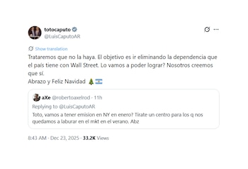 “Vamos a tratar de que no haya emisión. El objetivo es ir eliminando la dependencia que el país tiene con Wall Street. ¿Lo vamos a poder lograr? Creemos que sí”, respondió Caputo en su cuenta de X ante la consulta de un seguidor. Minutos más tarde, el presidente Javier Milei reposteó la afirmación del ministro, en una señal de respaldo político a la estrategia oficial.