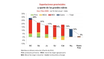 El fuerte crecimiento de las exportaciones en 2025 no tuvo un impacto homogéneo en el país y expuso marcadas diferencias regionales. Mientras Neuquén logró capitalizar el boom petrolero de Vaca Muerta, en las provincias mineras el salto de las ventas al exterior no se tradujo en una mejora significativa de sus economías.