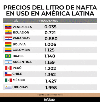 En diciembre de 2025 se fijó un aumento del impuesto en naftas de $17,4/litro y en gasoil de $17,4/litro, lo que llevaba a que en enero se tenga que aplicar un incremento de este componente de $224,9/litro y $110,7/litro respectivamente.