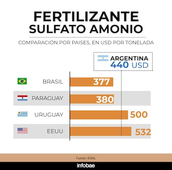 Los datos surgieron del último informe del IERAL, de Fundación Mediterránea, que actualizó su relevamiento comparativo de insumos y equipos agropecuarios en Argentina, Brasil, Paraguay, Uruguay y Estados Unidos, con precios expresados en dólares a diciembre de 2025 y enero de 2026.