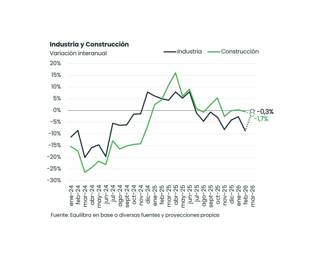 A diferencia del agro, el resto de los sectores exhibió un desempeño más débil. Según Equilibra, el EMAE excluyendo al sector agropecuario se mantuvo prácticamente sin cambios en marzo, con una suba de apenas 0,1% interanual.