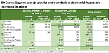 La Bolsa de Comercio de Rosario actualizó los datos de venta de soja hasta el momento, en el marco del Programa de Incremento Exportador que lanzó el domingo pasado el Gobierno de Alberto Fernández, y según las anotaciones de operaciones que figuran en el SIO-Granos.