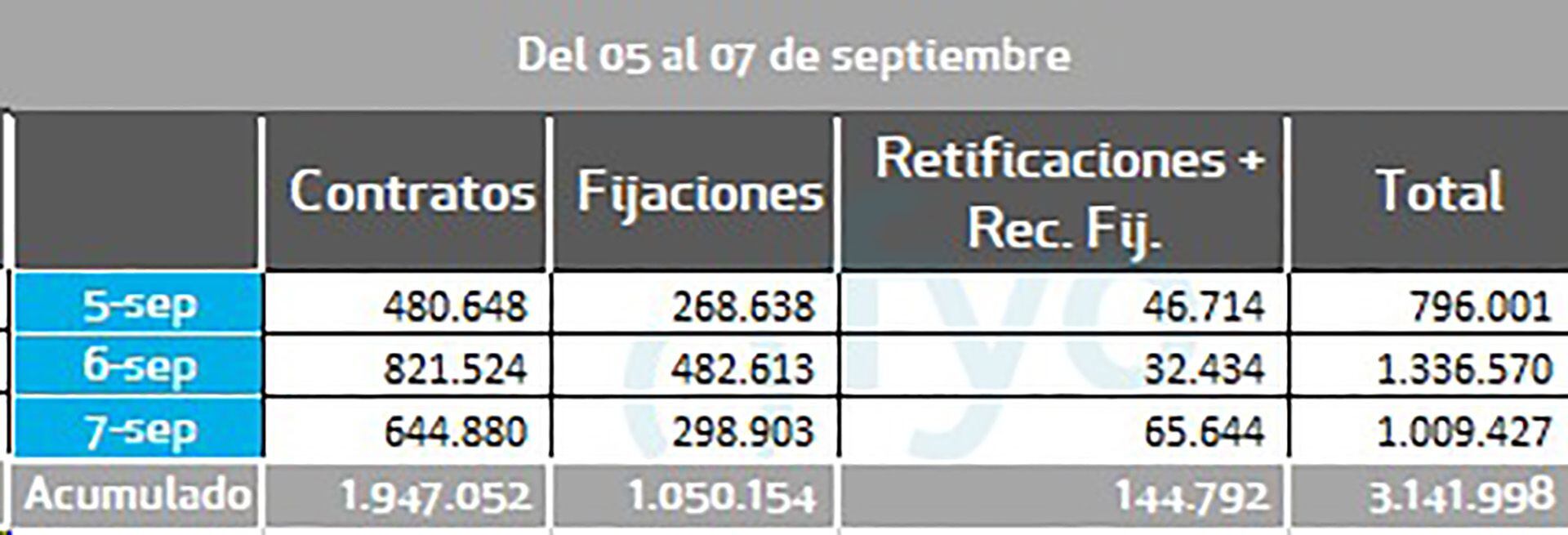 Entre el último lunes y ayer los productores comercializaron 3,1 millones de toneladas. De las mismas, 1.000.000 de toneladas se comercializaron en la jornada de miércoles, incluyendo tanto contratos de compraventa nuevos como fijaciones de operaciones concertadas antes del mencionado día, y excluyendo anulaciones.