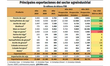 Sobre el aspecto planteado de los dólares que aportará el campo el año próximo a la economía nacional, días atrás la Bolsa de Comercio de Rosario (BCR) proyectó para el año próximo que el valor de las exportaciones de los complejos del agro se sostendría en niveles históricamente altos, y que generarían ingresos por USD 41.276 millones, representarán unos USD 380 millones menos que el registro que alcanzará el 2022.