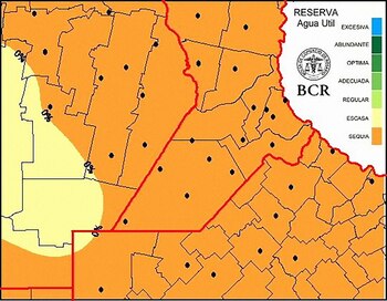 Además, dijeron que solamente en una semana aumentó un 9% el área afectada donde 200.000 hectáreas más pasaron a malas condiciones y la región totaliza 600.000 hectáreas en situaciones críticas. Hay otras 200.000 hectáreas que se sumaron a la condición regular, sumando 1,8 millones de hectáreas en este estado y se calculan que 100.000 hectáreas deberán resembrarse.