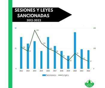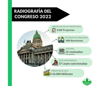 El 2022 fue un año donde el Poder Legislativo se caracterizó por tener una muy pobre productividad, con solo 37 leyes sancionadas de las cuales casi la mitad correspondieron a declaraciones de días nacionales, donaciones, expropiaciones y acuerdos. En este contexto, los proyectos vinculados al campo y la agroindustria volvieron a tener una pequeña participación en los temas tratados en el Congreso, no llegando a acaparar el 10% de las iniciativas presentadas.