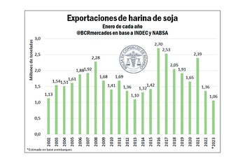 En un arranque de año en materia de ingresos de dólares por las exportaciones, para el Gobierno otra alerta es lo que sucede con el principal producto de comercialización al mundo de la Argentina: harina y pellets de soja. En 2022 representaron ventas por 25 millones de toneladas e ingresos que alcanzaron los USD 12.000 millones.
