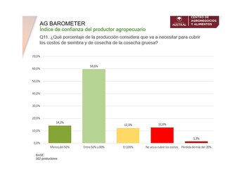 El relevamiento, a 406 productores cuyo valor bruto de producción es igual o mayor a USD 200.000, también mostró el momento complicado del sector en lo económico y financiero, como consecuencia del impacto de la sequía en la campaña agrícola, y las perspectivas de los productores para el corto, mediano y largo plazo.