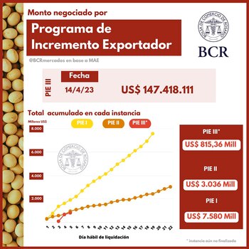 Además, el monitor SIO-Granos, plataforma oficial sobre lla comercialización y precios promedios de los granos, informó que hasta las 18 horas de ayer se habían negociado 36.860 toneladas de soja, que sumadas a las 441.747 toneladas transaccionadas entre el lunes y el jueves, implicaron un cierre estimativo para la semana de 478.607 toneladas vendidas por parte de los productores.