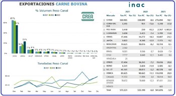 Esta situación plantea dificultades para la exportación local, ya que China representó en el 2023 el 78,5% de las exportaciones de carne vacuna realizadas por nuestro país. Por ello, el recorte abrupto en los precios concertados con los importadores chinos puso en apuros a la exportación nacional por el descenso en los precios. Situación que logró ser compensada solamente con un mayor número de envíos.