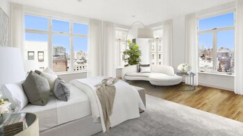 Dentro de las cuatro espaciosas habitaciones del dúplex se encuentra la principal que posee un vestidor, un espacio dedicado al maquillaje. El baño principal posee una doble ducha con mampara de cristal y una bañera de dos metros con una vista perfecta del barrio de Chinatown.
