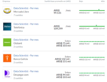 El especialista en datos es un perfil cada vez más solicitado y muy bien remunerado. Con una simple búsqueda se encuentra que las empresas más grandes del país pagan por encima de los 100 mil pesos a los analistas de datos. El Banco Galicia, por caso, ofrece entre 111.000 y 138.000 pesos para cubrir una posición de Data Scientist. Unicornios como Mercado Libre, Despegar o Globant también tienen a los especialistas en datos entre el personal de más altos salarios.