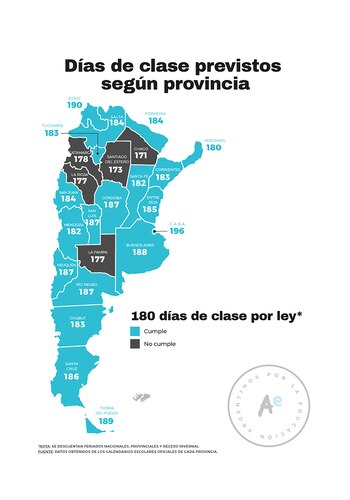 Desde 2003, cuando se sancionó la Ley 25.864, se les exige a las provincias alcanzar un mínimo de 180 días de clase. Como suele suceder desde entonces, otra vez este año hay distritos que no llegarán a esa marca. En sus calendarios, al menos cinco jurisdicciones prevén menos de los 180 días obligatorios.