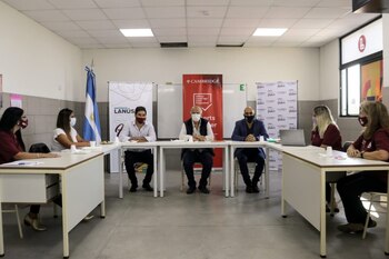 El intendente de Lanús, Néstor Grindetti, junto con el secretario de Educación, Empleo y Deportes local, Damián Sala, se reunieron con el gerente de Cambridge University Press Argentina, Martín Tabares, con quien trabajaron en los pasos a seguir en el marco de un acuerdo de colaboración en el programa de inglés que se aplicará al estudiantado de la Escuela Bilingüe Manuel Láinez. El encuentro se realizó en las instalaciones de esa institución educativa de Villa Jardín.