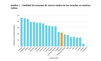 En rigor, durante los primeros meses de 2020, la gran mayoría de los países del mundo cerró sus escuelas. Según el ranking que elaboró el Observatorio Argentinos por la Educación, Argentina ocupa el puesto 44 sobre 156 en lo que respecta a mayor cantidad de tiempo de escuelas completamente cerradas. En Latinoamérica ese ratio lo lleva al puesto 14 sobre 22 naciones, por debajo de Brasil, Paraguay, México, Venezuela, entre otras.