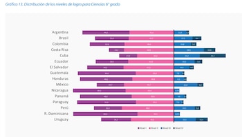 Lectura de sexto grado fue la única medición en la que Argentina no quedó por debajo del promedio. Los estudiantes alcanzaron 698 puntos, el mismo registro registro que la media regional. Sin embargo, sí hubo más chicos en los niveles más bajos de aprendizajes en comparación a la prueba de 2013 (5,2% más).