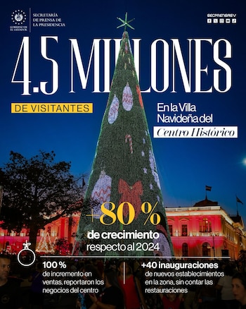Durante la temporada navideña, entre el 20 de diciembre de 2025 y el 4 de enero de 2026, arribaron 271,000 visitantes internacionales, un 14% más que en el mismo periodo del año anterior. El turismo interno también mostró dinamismo, con 5.9 millones de visitas a parques y playas solo en diciembre, según detallaron los ministros.