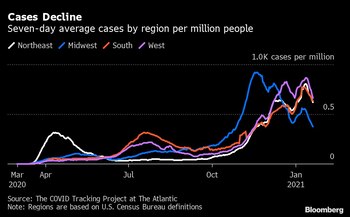 (Bloomberg) -- Covid-19 cases are declining in 46 states, reducing pressure on hospitals that have been fighting the virus for almost a year.