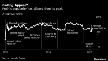 The activist and his allies hope that his case will catalyze the public discontent that’s been simmering amid a 4% decline in real incomes and coronavirus lockdowns, driving Putin’s ratings to record lows at one point last year. They’re targeting parliamentary elections in September as a chance to send a signal of the breadth of popular unhappiness.