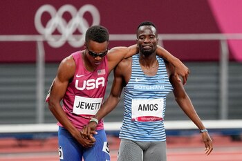 Isaiah Jewett and Nijel Amos were sprawled on the track next to each other, seemingly out of the running in the 800 meters.