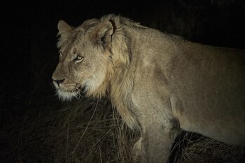 The wildlife researcher detects another movement in her thermal binoculars. The headlights flash back on, illuminating the majestic mane of a lion approaching stealthily, careful but calm.
