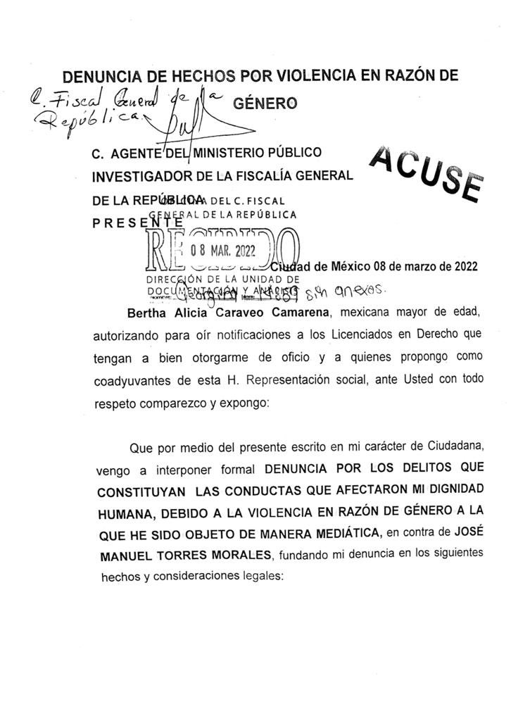 On March 8, on International Women's Day, Chihuahua Senator Bertha Caraveo denounced influencer Chumel Torres for gender-based violence.