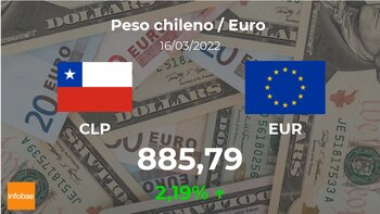 The euro is trading at 885.79 Chilean pesos, which is up 2.19% compared to 866.80 Chilean pesos the previous day.