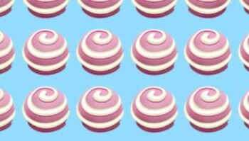 In the following illustration there are several candy balls. They all seem to have the same pink color with white lines; however, one of them doesn't have that symmetry. It is different and with that detail is where several have failed to pass the test, since only 5% solved the puzzle the first time. Keep this fact in mind as there is no limited time.