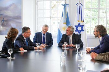Fernández was accompanied at yesterday's meeting by the Minister of Foreign Affairs, International Trade and Worship, Santiago Cafiero. The meeting was also attended by Israel's Ambassador to Argentina, Ronen Galit, and the Deputy Director-General for Latin America and the Caribbean of the Israeli Foreign Ministry, Jonathan Peled.