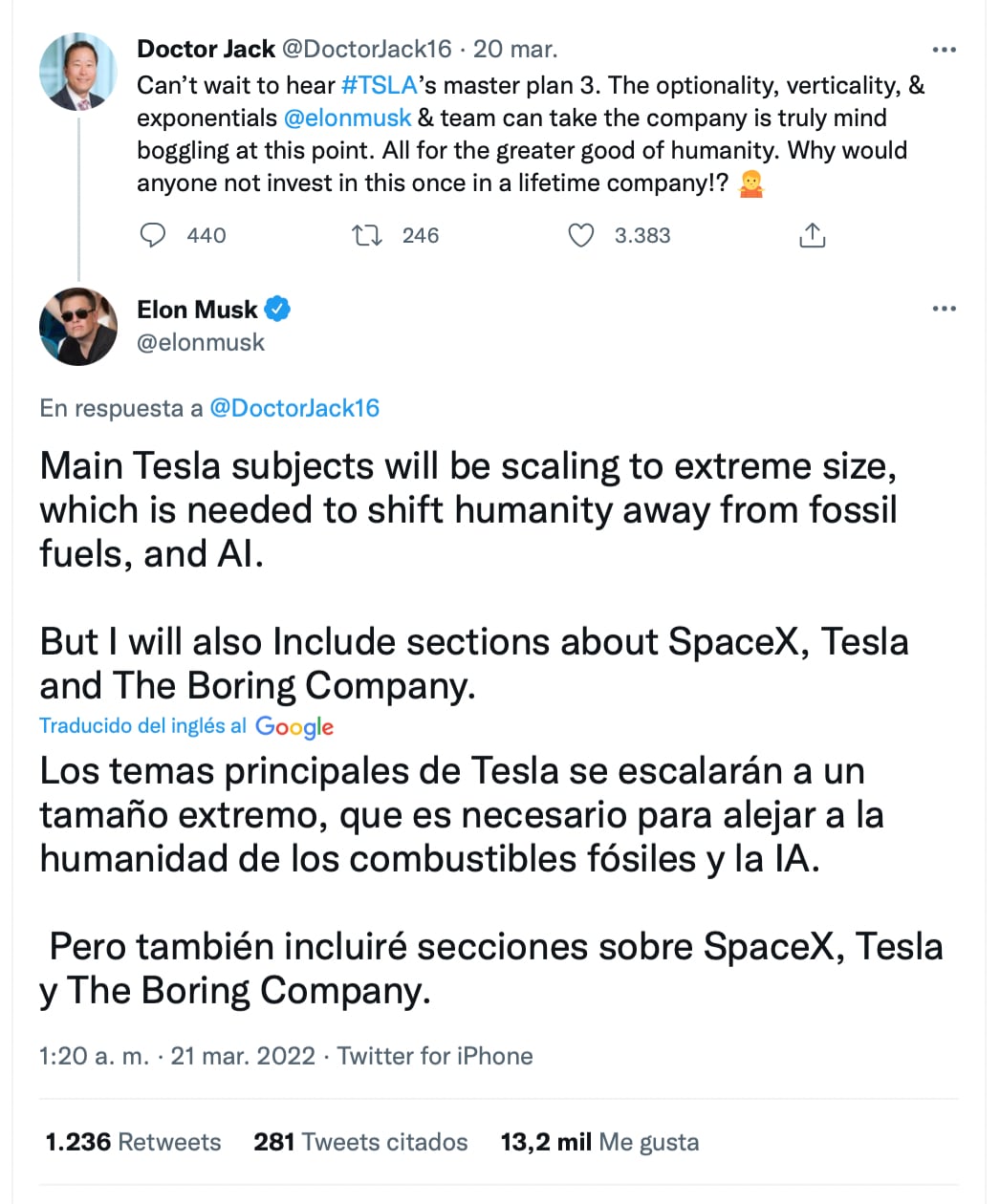The fourth point is what the Tesla CEO revealed in part on his Twitter account: “The main focus will be scaling to an extreme size, which is necessary to move humanity away from fossil fuels, and the development of artificial intelligence,” he explained: “It will also include sections on SpaceX and The Boring Company.”