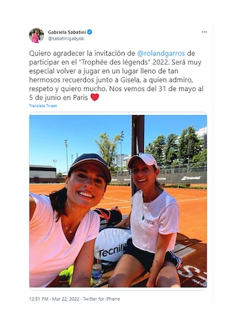 At the age of 51, Gabriela Sabatini will play tennis again. She confirmed it herself on her Twitter account, along with an image in which she is accompanied by Gisela Dulko. It will not be at the US Open, the Grand Slam that he managed to raise in his brilliant career, which he put an end to at the age of 26. “I want to thank Roland Garros' invitation to participate in the 'Trophée des légends' 2022. It will be very special to play again in a place full of such beautiful memories with Gisela, whom I admire, respect and love very much. See you from May 31 to June 5 in Paris, he wrote on his Twitter account.
