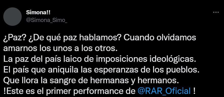 This became known after a woman identified as' Simona ', one of the people who was behind the invasion of the Primada Cathedral, published a video on that social network about what happened last Sunday, March 20, together with a description in which she stated that the events were part of a performance by a group known as R.A.R ('Network of Artists in Resistance').