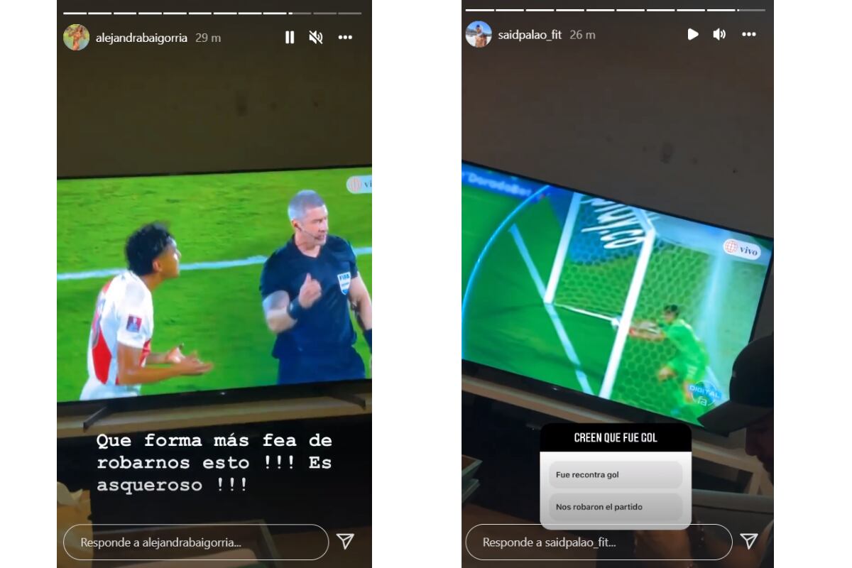 The reality boys joined the long list of television figures who showed their annoyance at the alleged goal in favor of Peru. “What an ugly way to steal this from us! It's disgusting!” , wrote the popular 'Gringa de Gamarra' on his Instagram stories, while his partner was encouraged to put up a box of questions asking his followers if they think it was a goal or if it was a stolen match.