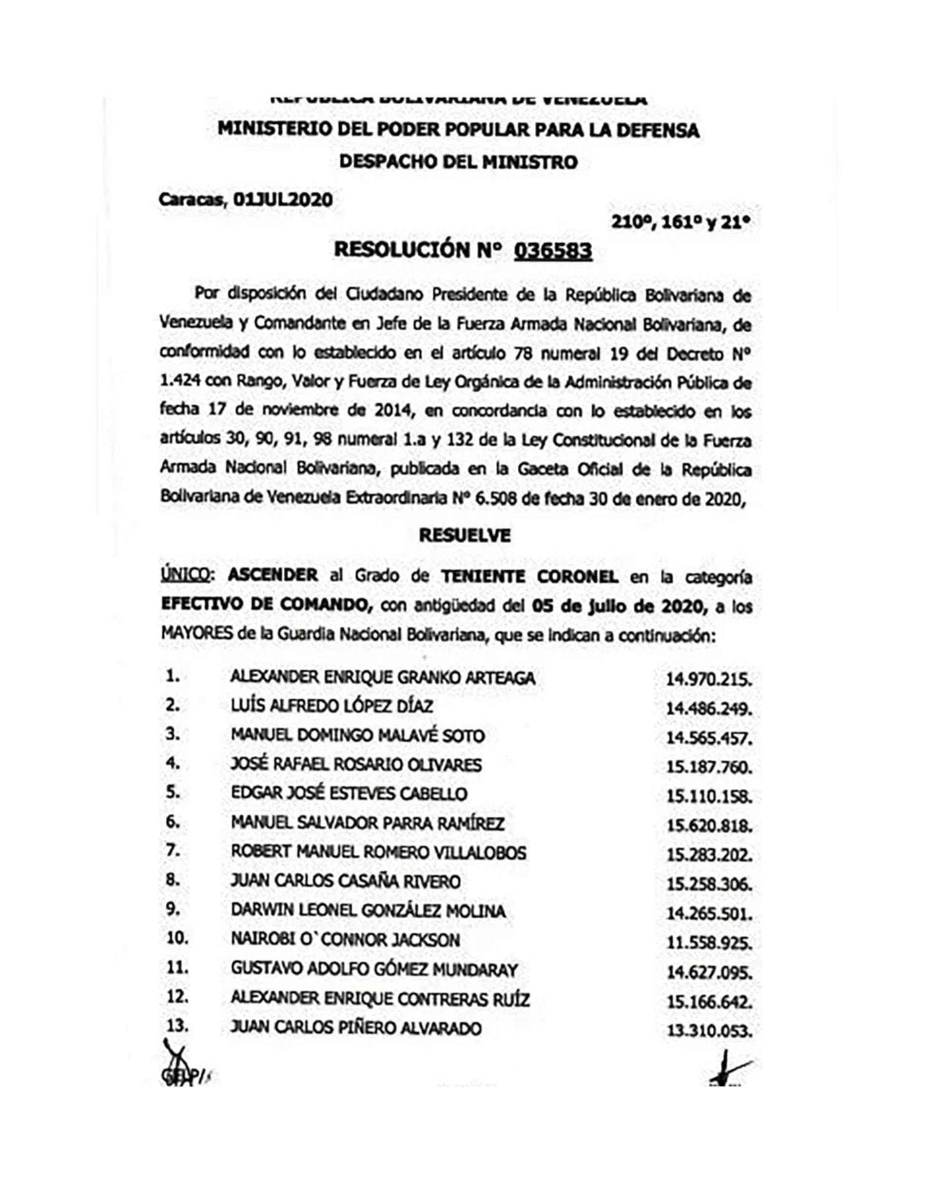 Graduated from the Officers Training School (Efofac), fourth place in the II Promotion “Battle of the Honey” 2003, he was promoted, on June 29, 2016, resolution 014717 to Major in the Effective Command category and in 2020 he was promoted from number one to Lieutenant Colonel. Among intelligence officials it is considered a merit that he executed the pilot Oscar Pérez and a group of young people who had already surrendered in the so-called El Junquito Massacre.