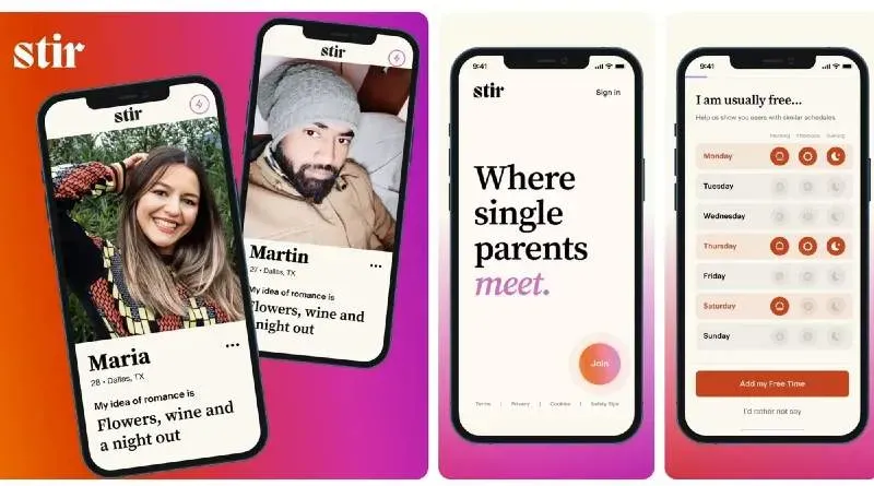 Since it is difficult for single moms and dads to coordinate schedules, the app has a feature called Stir Time that allows you to see “the time available” to help couples find the right time for a date. The busy schedule can be displayed on each profile.