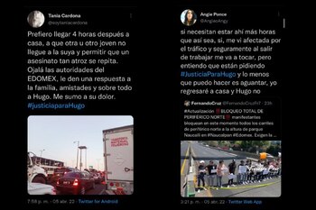 From their cars and with phrases such as “I prefer to stay in traffic than to have another boy killed”, “today I'm coming home, Hugo doesn't” and “the least I can do is endure”, some netizens from their Twitter accounts, assured that they would not care about traffic as long as it was a demand for justice and clarification of the facts.