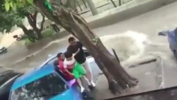 Minutes of anguish lived in a seven-year-old child and an adult in Barranquilla (Atlántico) after the car in which they were mobilizing was trapped in one of the city's roads, where a stream had a sudden increase due to the heavy downpours that are falling in the country.