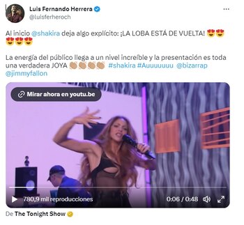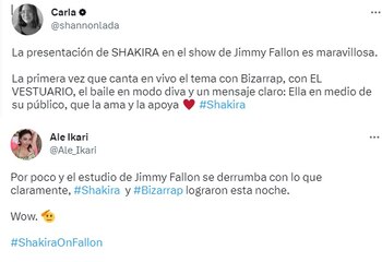 Por su parte, otra usuaria de Twitter agregó: “Por poco y el estudio de Jimmy Fallon se derrumba con lo que claramente, #Shakira y #Bizarrap lograron esta noche. Wow”.