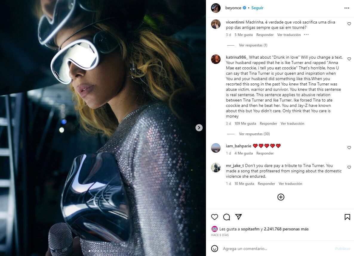A partir de la muerte de Tina, los fanáticos han despotricado contra Beyoncé y Jay-Z asegurando que fueron insensibles con la violencia que vivió Turner durante más de una década. Ninguno de los artistas se ha pronunciado al respecto, pero ya hay peticiones en redes para que la letra de Drunk In Love sea cambiada.